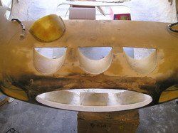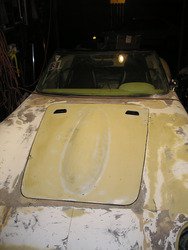 Wow, how time flies by. It has been a good four years since I really spent much time on my GTO. This past week I extended the front fiberglass section just over 4" to match the 280Z extension I did some time ago. I also recreated the top three air scoops. I also finished cutting out an aluminum face plate for my fiberglass dash. Over the next two weeks my goal is to have the body finished.