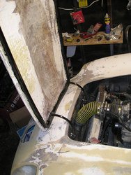 I've modified the front end of the body to include an oval mouth opening, ground air scoops and smaller circular brake cooler vents. Six weeks later and this is where I am. The before and after pictures are included. I am pushing to get this project wrapped up this summer!