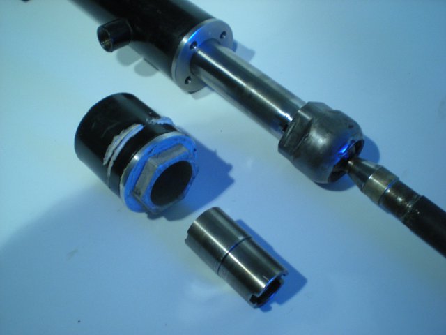 Update, I found that the piviot center of the mono ball in relation to the housing is not controlled. So I changed from a snap ring to a clamp. This gives the freedom to center the mono ball to the pin center. This will also allow the adjustment of the pin pivot axis in relation to the strut. I do not know the angle of the strut to the pin pivoit axis in the side view. I suspect it is 90 degrees. The only struts I have off a car are from a wrecked 240 and looking at the way the rubber bushings are distorted any measurement from them will be questioned as to its value. The car was hit on the rear wheel. If anyone has the angle, can you please share it.