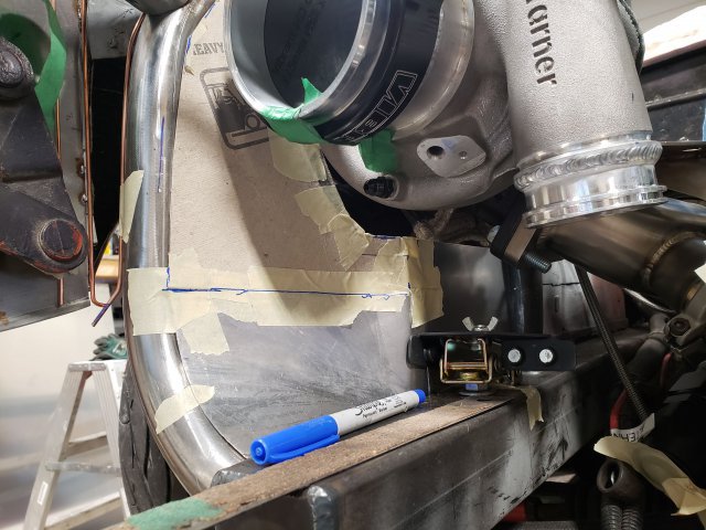 Awhile back I made the panels that attached to the hood hinge, when I bead rolled them I didnt account for the shape of the hinges so when I mounted the hood hinge it over top of part of the bead roll design. Normally I would just leave it but for some reason its been bugging...the old lady says im crazy. Ended up make "version 2" of that patch panel and I think Im happy enough with how it came out. Started working on the cold side piping for the intercooler as well. I ended up printing out some pie cuts to see what type of centerline radius would fit best, ended up using a CL radius of 3.5". If anyone needs any STL or gcodes on pie cuts let me know! Been looking at electrical connectors and I've seen people using Mil Spec, does anyone have any other recommendations?