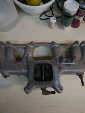The efi system was a mess, missing pieces, stuck injectors, butt splices and wiring gremlins everywhere along with the typical corrosion on terminals, after a week of tinkering it started, ran super rich, in somehow I later realized dumped at least a quart of gas into the oil. Things were hooked up incorrectly and after a while I made the decision to start new and do the Holley 4bbl conversion. I started ordering parts. I've bought a Bob sharp racing Holley intake, Holley 390 cfm carb, intake gasket, adjustable fpr w gauge and a distribution block to add circuits. The carb fuel pump will be ordered tmrw along with the throttle kit and air cleaner and a few relays to set up a fuel pump circuit and electric fan circuit. Here's a few pics of the parts I have so far. My first question is about the ports on the bsr intake. Facing the intake so that the writing on the intake is right side up, the port currently blocked off on the left should have an 1/8" Barb for distributor vaccum advance?, on the right the larger one is brake booster?, below the plenum there's a chamber with a port on each side, I think it's the water jacket like the Clifford intake advertises? Never seen on up close so I'm not sure tho. And one side is blocked off, so if its supposed to heat the mixture to better atomize the fuel by passing water from radiator through it then why would one side be blocked off? Not blocked, but a port with a cap on it? Fgoing to start stripping efi stuff and try to get intake installed this weekend if gasket comes in the mail so any ideas would be great. I'll try to take some pics as I go, sometimes get caught up in the work and just want to get it done. Thanks