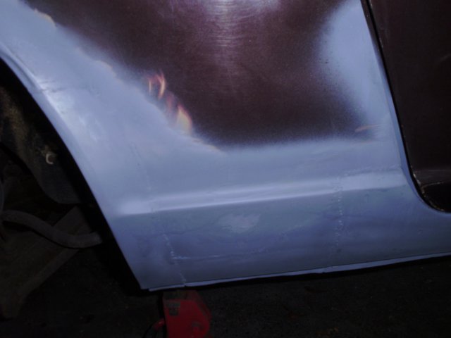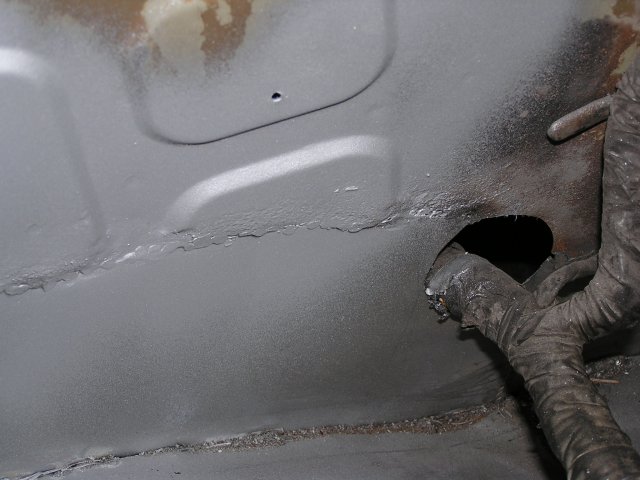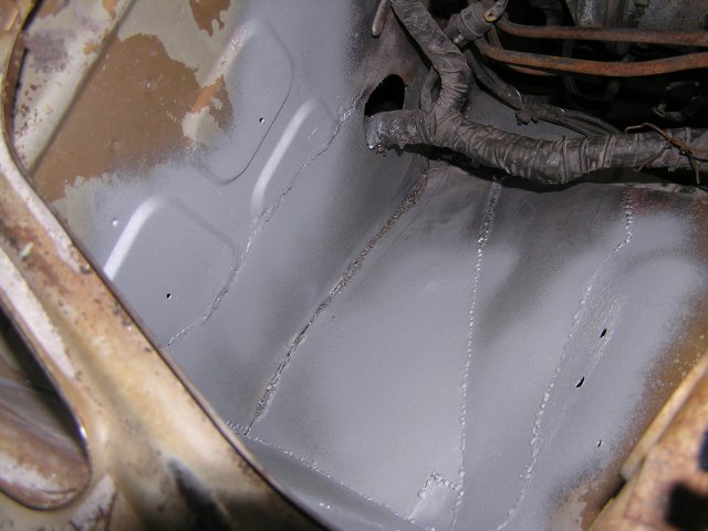Well, continued slow but steady progress on the zed. I have been focusing on getting the floorboards and other interior surfaces done so i can put my interior back in. I don't want to be sanding or creating dust after the new carpet is back in, so I am holding off putting down the sound deadening etc until i have finished creating major dust. The plan for the floor, now that my buddy Andy has done the welding, is to lay a little glazing putty down on the pass side to smooth out welding lines, then finish most of the bondo work on the pass side dog leg. Once that is done, I will take all the crap out of the car, clean it like a madman, using the following sequence for areas to be painted: 1. where surface is smooth, a little roughing up with 120 grit 2. clean with generic 'green' cleaner 3. clean again with 'marine clean' from POR 3.1 spray some POR Metal-Ready, which will need cleaning again after it has dried 4. Clean again with Tumbler silicon removal in places where i suspect caulking has been used, and with regular paint thinner elsewhere. 5. final wipe with thinner as needed. 6. Galvininzed etching primer where there is bare metal. 6.1 add body seam caulking where needed, ie, where floorboard meets firewall, etc 7. Final thick topcoat of rustoleum paint, tinted to roughly match the original yellowish/goldish colour of the floorboards. -