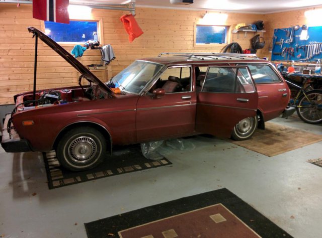 Yep eldery couple(freinds of my family) who needed the garage space it occupied and just wanted to get rid of it . They bought it new in the US in 1978 and brought it with them when they moved to norway the same year (she is from the US , he is norwegian)Its dusty from the garage years , but almost rust free only some minor surface rust here and there. Just need to figure out the engine and im good! Thing is boring and honing isnt cheap here in norway.. Checked around and the cheapest was 600 usd and thats without pistons and rings ,thats why im scouring ebay to se if any L series engines come up . Im thinking the easiest way is to swap for a carbed engine provided i can use the ignition and fuel pump( maybe change the fuel press. regulator ?) from the l24e thats in the car .