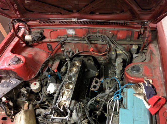 Hi i have an 810 wagon with a broken block( badly corroded cyl.wall on no.3) . I have gotten hold of an L24 from a 81 Laurel(euro) and the block says W24 and the head says e88 this is a stock engine . The pistons are dished on this engine and on my 810 they have two indents in them. Would this be a problem compression wise? This is the laurel block . Note: have not cleaned the surface for the new gastet yet so its dirty. And this is the 810 . -