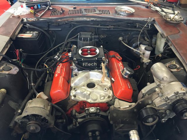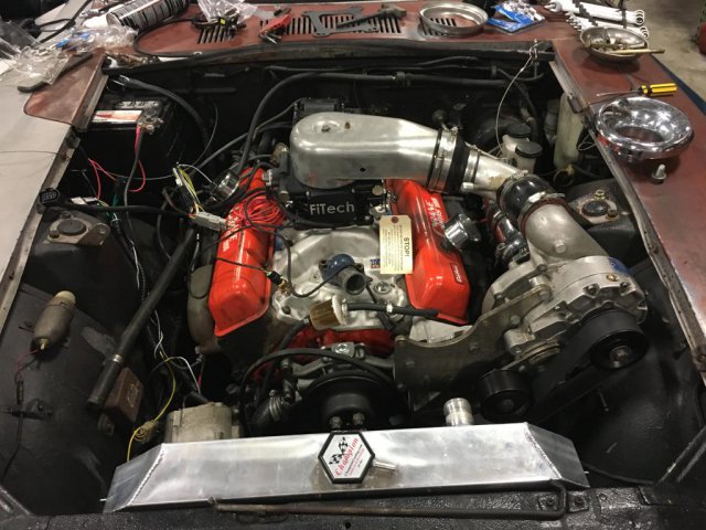 Made a fair amount of progress today, welded and hooked up the o2 sensor. Hooked up a lot of the other wires only have like 3 left. Things left to do, change distributor to a conventional 2 wire dist (msd pro billet), wire in the coil, bolt in, plumb and wire the fuel command center, and wire to the battery. The reason why im changing from an HEI distributor to a 2 wire one is to utilize the timing control feature from the Fitech unit and also to handle boost. So basically I need to lock the advance on the distributor and phase the rotor 10 degrees (reminds me of when I turbocharged my vw rail buggy lol). So all in all I hope to crank it up tomorrow but who knows shit happens lol -