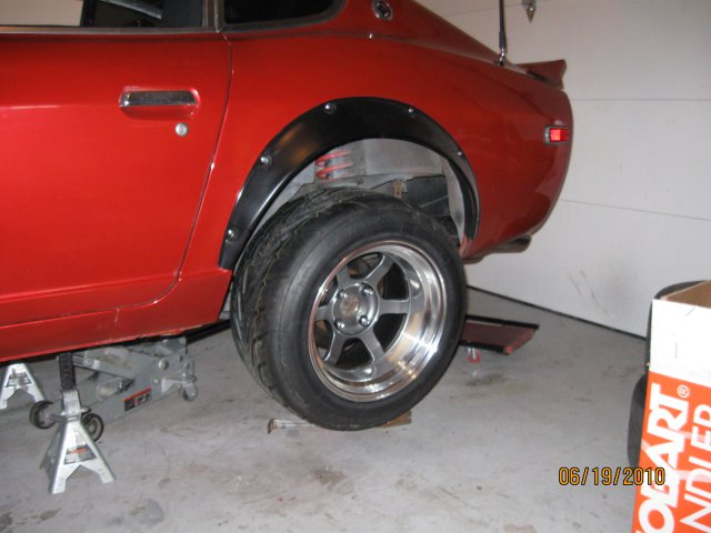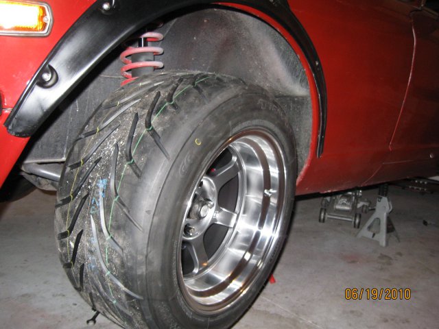 Not sure if I ever posted the pics of the volk te37v wheels or not. 15x10 with 4" backspacing and toyo r888 235/50/15 all the way around. I know I was doing some work and the front tires need to get swapped, they are on the wrong side. oops, tgried to edit and ended up with 2 posts -