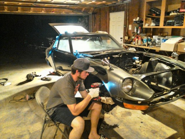 About me I don't want to go too in depth and bore anyone, so feel free to skip. lol My name is Kyle. I'm from Oregon City, Oregon. I'm in the USAF so that's why I am in CA. My current car is a 2008 Honda Accord V6 Manual 6 speed. It's a fantastic and very reliable car. Nice interior and sleek looking exterior. Just a good all around daily. And its the first car I have driven with a stick, and boy did I love it! I have spent a couple years with it, but after increasing its power steadily, I realized the limits and problems with a forward driven car. Not to mention the absolute BS that is California smog. I was at the point of either spend the money on a power adder, or a new car. I decided it wasn't worth pouring more money into a car that had such limitations. Especially in size and weight, she just wasn't very good in the twisties and back roads, so I decided I wanted a Rear driven pre- 1975 car. After a length of time searching, I couldn't believe what an awesome find a 240z was! A small, lightweight, Japanese car, pre- 75, endless parts, huge forum support, the list goes on! I was sold! The Car While on leave back in Oregon for a week, after 3 months of searching for a good deal on a 240z, one popped up for sale for $3,500. Super cheap! It was a 1972 240z with a Chevy small block V8, with a 3 speed automatic. A lot of people had interest, so decided I was done searching, and ready to start building; I bought her outright. Here is the AD: The Good -V8 Swap -The Trunk area, engine bay, and I (hope) under fenders were sprayed with bedliner -Body panels are straight -Badge and side marker light delete -Its a 240z The Bad (As I have quickly, or slowly discovered) -The paint is awful, and needs to be redone (Huge amount peeling) -The windshield wiper doesn't work -The heater doesn't work -The Air Blower doesn't work -The dash was cracked in multiple places -The passenger door was missing the interior panel -The engine, differential, and transmission were pissing oil -The hatch strut was blown -The lights were all extremely dim -The car got less than 8 MPG -Seats are cheap aftermarket ones. Fit nice though actually -You have to SLAM. And I mean SLAM the doors to get them to shut. I'm scared I'll shatter the glass! -The passenger window won't roll down -Probably a lot more I'm forgetting So yes, the car needed work. A lot of it. Was it awesome to drive and own a V8 car? Yes. Yes it was. I only had a few days of leave left, and I sadly realized I couldn't take her with me. Especially with the gas mileage at aircraft carrier fuel consumption rates. On the last night, I took my friend out for a spin, and very soon after leaving the driveway we could smell something burning. It was too foggy to drive fast, so we turned around and went home. I ended up leaving the car at my friends garage, which happens to live only a couple houses down from my dads. Here is the car next to his yellow V6 Mustang: We pulled the windshield wiper motor, the dashboard, the heater blower assembly, cut out random disconnected (and unsafe) wires and taped them up, and cleaned and vacuumed any debris. I loaded the dashboard and wire harness into my car to take back to Cali so I could be somewhat productive for the next 6+ months. Later my friend discovered that the wire harness caught fire in the engine bay! And the harness I had, was melted in multiple places. I decided to scrap it. I will need an entirely new wire harness. What I have been doing Research. Researching like a crazy person. I have also been buying parts like crazy and shipping them to Oregon. Since I'm stuck here, I: -Fixed the Dash Cracks / Sanded / Painted -New Vents -New glove box setup and badge -Autometer gauges -Realized the wire harness I had was hopeless after attempting repair My Friend has been inspecting parts that I send him, and tinkering on the car. -Sold Engine / Tranny / Radiator / exhaust for 750.00 -Sold Bumper -Sold Fuel tank Has a total of 1k. So the car as a roller was 2,500. Even cheaper! What Happens Now I am taking 30 days of leave starting on 20July2016. I plan to: -Sell the Honda -Engine Swap the Z to an LS motor. -Make the 240z my new DD. Here is the car as it is today. My friend installed the $420.00 Fender Mirrors, and there is the photo of the horrible quality Retro-Spec spoiler sitting on the hatch just to see what it looks like: That's it for now. Later I will post shots of my excel sheet of costs, future plans, ect.