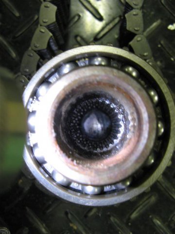 Article can also be viewed here: http://www.skylife4ever.com/2011/04/rb26-engine-assembly-how-to-build.html OK. It's been a while, but I've been busy preparing my bike and myself for the upcoming race season, working on other peoples, stuff, etc. First things first; we'll start with the HKS oil pump. Here are two shots of the housing and rotor cover, all cleaned up and ready to install. In addition to having much larger gears than the stock pump, the HKS pump also has ducts to bring oil to the rear of the rotors, as well. This greatly improves oil flow into the pump, reducing cavitation. You can see the inlet duct for the rear of the rotors on the left. I guess it could be called a bridge port. There's some scuffing from the rotors, but nothing you can feel with a fingernail. Even then, this pump has so much volume over a stock one, you could beat it with a chisel and it'd still outflow the stocker. Here's the rotors installed. The stock pump is a true Gerotor, where the HKS and most aftermarket pumps are more of a Duocentric rotor design. Cover bolts with thread locker. Don't miss this step. Tightening the bolts. Look for the thread locker ring around the bolt. This tells you it's under the bolt head, as well and will aid in keeping them in place. Installing the pressure relief piston. Dual springs. These shims go under the spring, inside the cap. The cap's aluminum and the shims keep it from galling, as well as setting the pump pressure. Install and tighten the cap with crush washer. Install the oil seal, and it's ready for action. Here's the block, fresh from cleaning and honing, with the new main bearings installed. I'm using the Nissan N1 bearings for this motor. Some of the pictures are sideways. Deal with it... As you can see, the bearing with the groove is in the engine block and the non-grooved bearing is on the bottom. Never, ever use a grooved bearing on the bottom. It's Engine Building 101. The bottom bearing is where the engine's load goes. First, ain't no oil coming out of any hole or groove in the bottom shell to lube it. 100psi of oil pressure vs. 5,000psi of crank pressure? Second, it gives oil another place to run to when the squeeze is on. Third, the more surface area you have for this bearing, the more the load is distributed; the bearing surface material has less chance of breaking down, and the oil film has a better chance of keeping the crank away from the bearing. I've seen HKS race bearings that are grooved 360. This is a big no-no. Oil squirters installed and torqued to 25lb/ft. Cap torqued in place with bearings. Then check the size of the hole with a dial bore gauge. This is the most accurate way of checking clearance. The dial bore gauge doesn't really tell you the size. It's a comparator: You check the size of the bore using the gauge, and then use a micrometer on the gauge to see what the bore size is. Use the same micrometer to measure the size of the crank pin. The difference between the two is the oil clearance. This engine will have 0.05mm main bearing clearance. Nissan calls for 0.028-0.047, with a maximum of 0.090mm. If you're going to put the power to it, or spin the hell out of it, you want it loose. Loose means lots of oil flow between the bearings and pins. With big torque and big rpm comes big deflection; you need to give it room to move. The only problem with loose is a lack of oil pressure in the upper rpm. That's where the aftermarket oil pumps come in. They keep going long after the stock pump starts to lose steam. If you aren't spinning the RB26 way past the stock redline, or you're using tight clearances, an aftermarket pump won't do anything for you as far as oil pressure or volume goes. Most of the aftermarket pumps have the same pressure settings as stock, they just have more volume. That extra volume is stagnant until you reach the point where the engine needs it. Up until that point the pump simply returns it to the pan. Here we check the crank runout. There is no such thing as a straight crank. This crank is bent0.02mm. That's about the best you're going to get with a straight six. Most stock cranks I've seen are around 0.04-0.06mm out. Here's one big reason we check the runout. Plastigauge. I'm sure there's one out there somewhere, but I don't own one: A dial bore gauge long enough to get to the center of an inline six cylinder with a crank girdle. Most other engines you just install the center cap and measure. The other caps can be removed so they don't interfere with the gauge. Anyway, If a crank has a 0.02mm runout, that means it takes up 0.01mm of oil clearance as it rotates in the bearing. Not only do we need to know how much the runout is, but we need to know where it is. Once we know where the high spot is, we can place it at 90 degrees to the cap so that it won't affect our plastigauge measurement. Lay a piece of the gauge across the entire pin. Reinstall the cap and torque it down. The remove it carefully. Be careful not to spin the crank while the plastic is in there either. It should look like this. Nice and even across the entire area the bearing rides. Measure the width of the plastic with the paper it comes in. Here you can see that it's thinner than 0.038mm, but wider than 0.051mm. That puts it somewhere in the middle, which is just where we want it. We also know that the runout is 0.02mm, so the smallest the clearance at the center bearing would be is 0.038ish, which is well within our design specs. Bearings all oiled up. Here's the 4130 chromoly Crower crank in for the final time. and nailed down. Here, the first thing we do is just snug down the bolts, then loosen them a little. Hit the crank nose with a plastic hammer to move the cap rearward, then hit the flywheel hub with a plastic hammer. This aligns the thrust bearing in the center cap so that when you push in the clutch, the thrust surface is touching 360 degrees. Keeps thrust bearings from wearing as much for you traffic light clutch riders. We have 0.10mm of