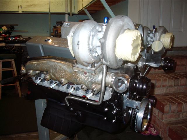Hey Davy, Thanks for the kudo's..actually, I am only using the Pro XT manifold from the Edelbrock system. I am running timing and fuel with an Electromotive TEC3R. I'm looking for a safe 700 to 750 RWHP on 93 octane and alcohol injection at 12 lbs of boost and 1200 to 1300 on race gas, alcohol injection and 18 to 20 lbs of boost. twisted280z: the manifolds came with the system...go to Banks Power and look for the twin turbo stuff and you will find them in the twin turbo kit. They will sell them separately however, they want almost $2000 for them. Hey John and Jerry...Great to hear from you! I took a look at your last test and that thing must be a beast as well...it seems mighty easy for you to turn that thing over...in your case, there is such a thing as too much traction:o) She's coming together pretty well...still some one-off cats and dogs I need to do before I put it back in and get it to the dyno. By your motor, I presume you mean the turbo motor or are you talking about the blower motor? It will be good to compare notes when you get the turbo motor humming...will keep posting as I make progress... Wayne