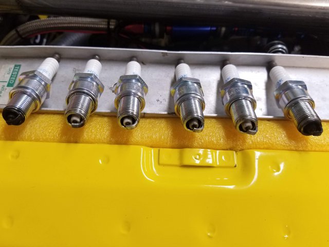 First attempt, it started but didn't run very long and was pig rich. I looked at my old TEC tune and noticed the required fuel was a lot higher on the MS3 so I dropped it a bit. Same situation, started, but didn't run for long, maybe 4-5 seconds. So now I start troubleshooting from scratch and find the first coil in the pack isn't firing so basically I'm running on 4 cylinders. Gotta be it! Not quite. To make this part of the story a little shorter, the Quad Spark that I received was defective. It had the output going to that pack grounded so if the Quad Spark was mounted, no spark to 1 and 6.