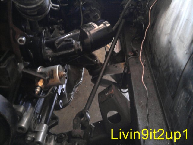 As to my method of aligning everything i just hung the engine in the bay and fine tuned the angle and alignment with jacks until i got it right. I measured from the bolt for the crank pulley to the rails to get it centered in the engine bay. At first i was going to go with the beta Motorsports kit but i decided against it due to the cost of it. So i went with the idea of fabbing up my own mounts. i had 2 options, first being make a cross member and building mounts off of that, second being coming right off the frame rail in the engine bay. For the sheer cost of things and simplicity i went with coming off the Frame Rails. I can only find picture of them before i boxed them in, but the show the gist of how i made them. By the way i made them out of 11 gauge cold rolled steel. I went down to my local Napa and went through there catalogs till i could find a rubber mount that fit my needs, needs being as skinny as possible to save room. They Rubber mount is literally 2 millimeters away from the steering shaft. I didnt use the Beta motorsports kit