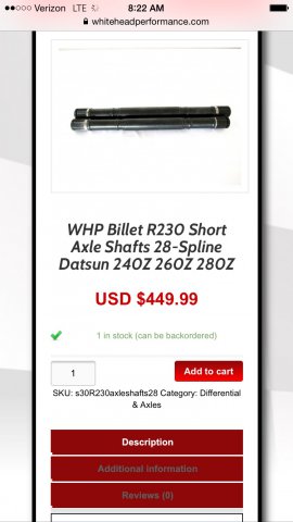 2. Op, there's a company in Canada Whitehead Performance that sells parts for the r230 swap. Just yesterday I got their shortened axle shafts from Moser, their 39 spline stub axles and companion flanges. When ordering these parts from them be ready to wait a while. The drop mounts, moustache bar, front diff mount and sway bar were from TTT and they look great, almost a shame to mount em behind the fuel tank. My only problem now is finding the q45 or 300zxtt cv axles to finish building the cvs for the z aside remans from oreillys. Good luck if you decide to do the swap, like anything modding datsuns it's gonna cost $$$$