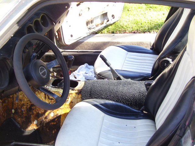 Like I said early the car had rusty doors and Blow struts, So 1st thing do was give it a tune up, Get a new set of doors, and put some new struts and springs on the car for starters. So I headed over to MSA for the Tokico blue struts with red spring combo,MSA sway bars, and a bushing kit,carpet kit,along with spark plugs, distributor, Wires , and rotor. While in the junk yard stumbled across a very clean white 280z I tried to buy the whole car from the yard but they wanted 1400 I was like no way . So I took the doors,Enkei gold slotted wheels and a few other miscellaneous Items I could use on my s30. I sent the Z to My dad house since I live in a apartment and they don't allow us to work on cars here (Even though I do any ways ) to do my tune up and suspension. When car came back home we put the doors and wheels we found in. I was very happy to have all my stuff installed especially the springs and wheels You know how us young folks are. I was kinda pissed that the junk yard guy broke my door mirror but besides that was very happy with my progress on the z. What Really mad me sad is the 300zx got sold But my other car was now making progress. Bare with me as I lost some of my better pictures to a virus Picture of the Z with the 2 guys in them are my dad and my friend (short story about my friend He broke my original transmission in my car driving it like a clown the 1st day after I put my suspension doors so I had him doing community service on my car , I was pretty pissed that I didn't get to enjoy my stock engine after dumping all the money I did. But none the less made me swap to turbo quicker)