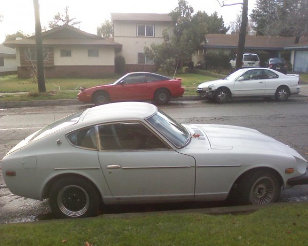 Before bringing my z home from the mechanic I stumbled across another couple a great craiglist deal a 1984 Toyota Celica supra ptype with greedy exhaust , 20g Mitsubishi turbo, and a whole bunch of other upgrades car was for sale on craiglist for 1,000 . I ended up buying the supra just so I could get the epsilon wheels and Greddy exhaust. The supra had some problem where it was burning oil . I drove it around for awhile til the Z was ready to be brought home. I gotta say that supra was quick. I swooped those parts off it and sold it back on craiglist to make as much of my money back But I ended up making a 100 and getting my parts very happy. I also picked up a 240z from the next auction for 350 But my wife said I couldn't keep it had 5 or so cars already I love finding Z's at the auction . Here are some pics of the 240z , and the supra , and my 280z with the epsilon wheels and exhaust (Getting nicer not ricer )