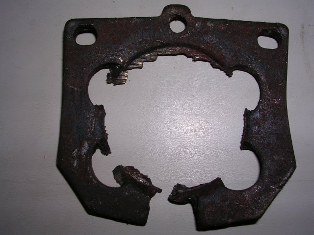 17. That's pretty similar to what I used for a while. Only problem is that you can overheat them quickly in a track situation. I got less than 5 laps before I boiled the brake fluid on one particular occasion when it was 110+ degrees, and the brake pad linings started chunking off. On several others I boiled the fluid after a couple sessions. The pad above had the friction material either disintegrate or just lose its bond with the backing plate on both pads after 3 sessions. I had ducting, but it wasn't very good and it was 2" hose. If you're going to be on the track with brakes like that, just mimic what the ITS guys do as far as venting the fronts.