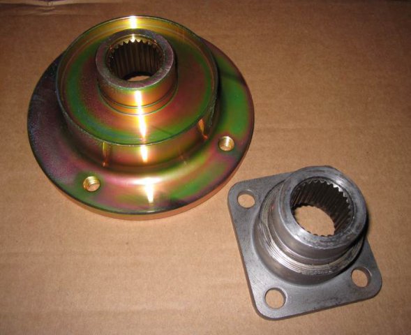 The problem with the 930 conversions is that they attach to the stock companion flange on the outboard end and the stock diff stub axle on the inboard flange, so you have huge CV's attached to a pretty flimsy flange. Attached pic is at the wrong angle to really see it, but the stock companion flange is about 3/16" thick at the flange and has a squared off connection to the splined part. Your CVs might hold 1000 hp, but that part won't. Sunny, if your car is bottoming like I think it is, that can sharpen the impact of driveline shock and cause more problems. -