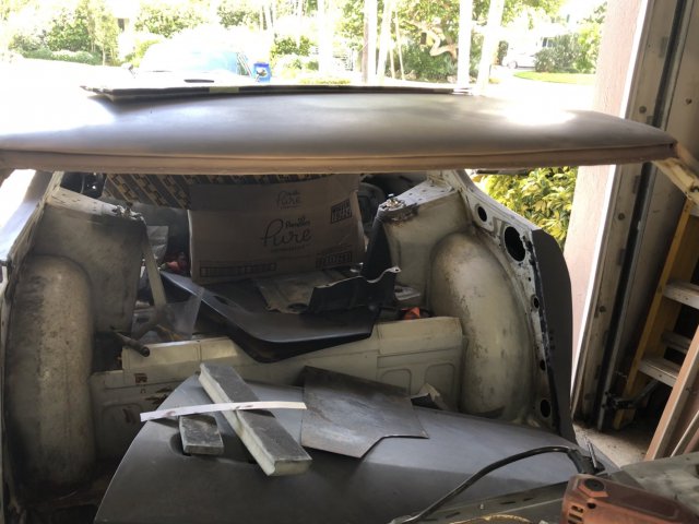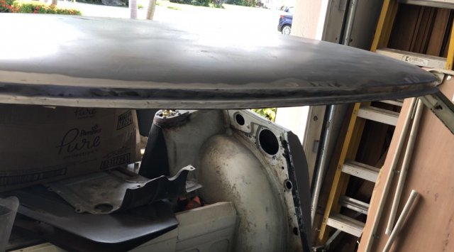 Back to rust/sheet metal repairs today. The upper section of the windshield frame had a couple small rust holes...I guess I could have patched them but I decided to replace the entire upper section. First, I ordered a piece of 20 gauge that was 48” long so I could make it in one piece. Next, I put it on a four foot brake to form the angle for the flange. Then it was time to form the compound curves with a shrinker/stretcher. Once all that was done I drilled off all the spot welds and cut the frame out just under the bend that forms the upper body contour. I carefully trimmed my patch piece to ensure I had an equal (tight) gap and then slowly welded it in place. A little metal finishing and voila a new upper windshield frame. -