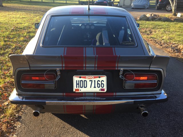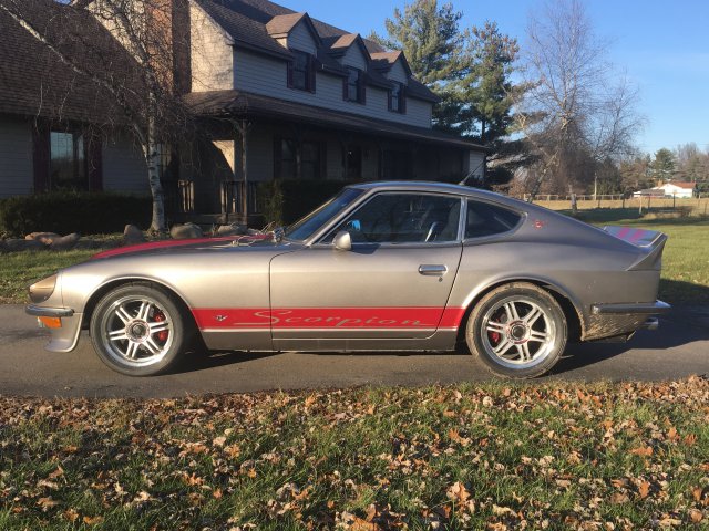 2. Hey people, selling my V8Z. Just as an FYI, my join date shows July of '18, but I was a supporting member from way back in the day. Back then, when we were voting on a tag line, we came up with "Engineered to be Feared" and I bought one of the T-shirts we had made. Thought the old timers might get a kick out of it, so I added a pic of it. It's a little ratty at this point, but a bit of memorabilia. I bought this Z to turn it into a track car, but a car on my bucket list came up for sale and I bought it. Unfortunately, I can't keep both as I also have a 3rd fun car. Hard to justify having 3 fun cars when I have kids college fund to build up. This is a rust free California car with 383 stroker V8 swap and Borg Warner 5 speed transmission and ZEX nitrous system. It had been sitting in the back of the owners shop for a few years and needed to be gone through. But it has had a ton of money/work put into it. It has a welded in 4pt roll bar, Recaro power seats, 5pt harnesses, 11 different gauges, adjustable coil over suspension, bump steer spacers, disc brakes all around, R200 limited slip differential, strut tower braces, fuel cell, electric fuel pump, full dual exhaust, and roller thumper cam, (sounds glorious). It has a serpentine belt system and AC. I may be missing some mods, but you get the idea. It had been built as a show car back in the day according to the PO. It is NOT a show car by my standards, I call it a 5 footer. Looks perfect from 5ft away. Has a custom paint job, but there is some cracking here and there. Interior is decent, but needs some fluff and buff if your looking for a cool Cars & Coffee rig. I have replaced the oil, oil pan, coolant, radiator, oil/air filters, plugs, wires, installed rebuilt calipers all around, new front drilled rotors, and brand new sticky Yokohama's all around. It had some old school hot rod 2pc valve covers that are worth some $, I replaced with lighter ones and new gaskets. It fires right up and drives well, there is a hole in one of the headers that I just patched till I got around to replacing them, there is a lifter ticking (new set $68). PO said it made 500hp, I think that was including the NOS as it has iron heads. So I have been going through it, cleaning things up, and replacing key items, carpet in front is good, rear deck carpet needs replaced and other cosmetic things to address. All in all, you could go show build or track monster. If you are looking at these you know the prices have jumped big time for 240's. This one is far from original, but putting an original engine/trans back in would be a weekend job, if that is your thing. So I did not do this build myself, (my first V8Z Swap was a Ford 302) but I'll answer your questions as I can. The front brakes are the 4 piston Toyota conversion, the rear are from an 80's vette, all new with braided lines. It has adjustable coil overs, but the shocks are not adjustable. I don't know the make/valving as I have not pulled them. Does not have camber plates, but does have heim joint strut bars front and rear. If I kept it, I would rebuild the carb, it's a holly 4bbl sitting on a single plane intake, which works well with a stroker motor. I did a compression check and all the cylinders are around 155 psi. I'm asking $20,000 for it. Located In Columbus, Ohio. Thanks for reading this far, on to the pic's! For those who are serious, I can send specific pic's, running vids, etc. Don't know how much I'll be able to post here.