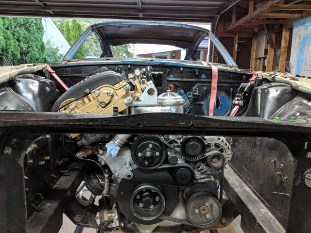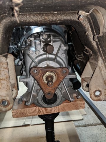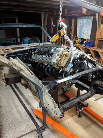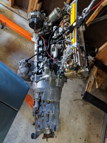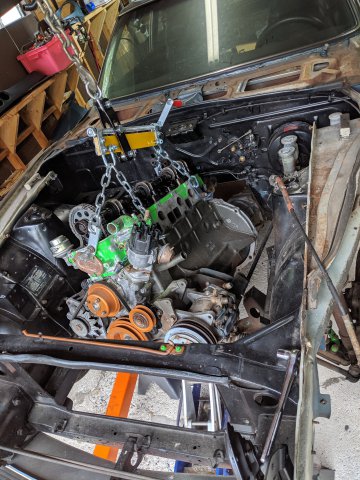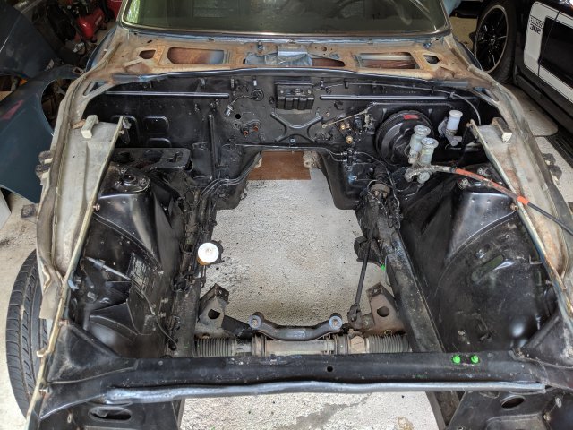BMW S54 into S30 Chassis - Build Threadcarbuilder723 replied to carbuilder723's topic in Other Engines It's been a few weeks, so it's probably about time for an update. Also finally got a cart for the welder. Lifting that thing around while trying to keep the bottle from tipping over was a major PITA. I got the sub-frame engine stand off supports finished and welded in, finished up the driver side engine adapter bracket, and then modified the passenger side adapter bracket to be able to *potentially* install an AC compressor in the future if I decide to go that route. I'll also include the wiring in the engine harness to be able to plug in the compressor so that it's already there a future proofed. The I started to look at the steering situation. This was an issue I saw coming so it was no surprise to confirm that the steering rack will need to be moved. I have an old e46 M3 power steering rack too that I'm considering using, but haven't made the decision yet to stick with Datsun mechanical steering or to go with the BMW rack. Nonetheless, I've torn apart the BMW rack and am going to rebuild it with all new seals etc... if I end up not using it, I'll just sell it. Now with all of the engine mounting modifications completed, it was time for test fit #2. I dropped the engine in and found that the clearance issue with the hood latch bracket was solved by lowering the engine and that the clearance to the hood should also be much more acceptable now. The other oil pan to driver side TC mount clearance remained sufficient. With the engine in and sitting pretty well, I started to bolt up the transmission for the first time. With a lot of maneuvering, I managed to get it bolted up and the tail end supported. The BMW transmission mounts line up nearly perfectly with the stock body mounts on the car. The trans cross member will take a little work, but that's expected. Also, installed the shifter just for kicks and found that I will need to shorten it up a bit, or extend the hold in the tunnel, we'll see where the seats land and how the ergo works out. Next I'll need to get the rear end in and that I can start looking at drive line angles.
