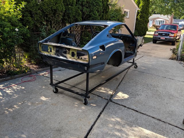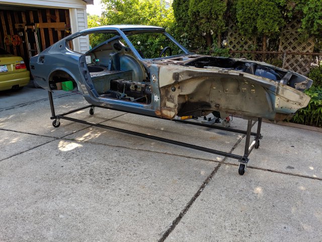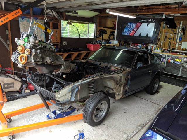 BMW S54 into S30 Chassis - Build Threadcarbuilder723 replied to carbuilder723's topic in Other Engines With the engine built, and the test stand operational, let's take a look at the car itself. It's a 74 260z, VIN in the high 28,000 range. When I bought it, it didn't run which didn't matter so much since an engine swap was the prime directive. The body was in really good shape from every indication I could see. Frame was straight, floors not rotted out (depsite being a little dented from someone who didn't know where to put the jack), battery tray completely mint. The only area of concern I could find was along the rear valence in the sheet metal behind the rear bumper. But it was isolated to that area and seems to stop well below the license plate. Other than some minor hail damage, the sheet metal is as good as i could expect for what I paid. Like I mentioned in my first post, after I bought the car, I stored it for nearly a year in Virginia while I built the engine. (I live in Michigan). Once I finally had the car in Michigan, I made short order of completely stripping it of every part I could find that had a fastener. Now the car is sitting on jack stands in my garage. That is pretty much where the car sits for now.