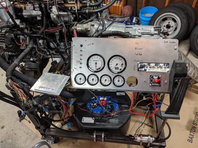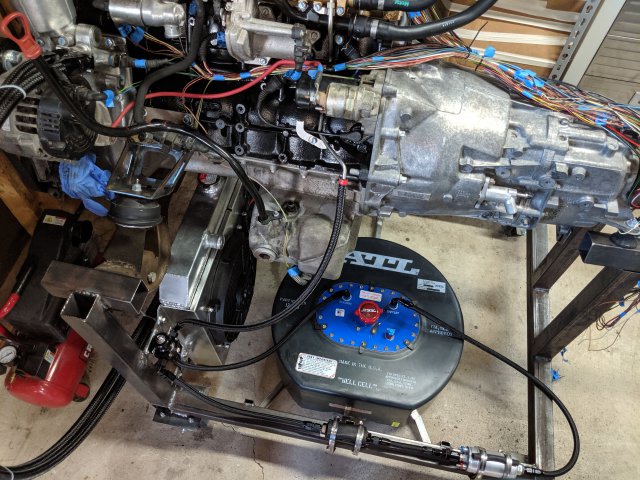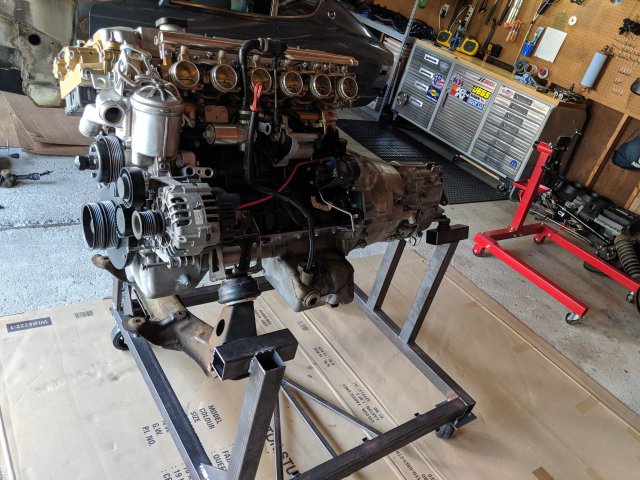 BMW S54 into S30 Chassis - Build Threadcarbuilder723 replied to carbuilder723's topic in Other Engines Engine Test Stand... This step probably wasn't entirely necessary, but I did it so that 1) I could get the engine running after an 8 month build process and 2) so that I could work out any of the bugs with the wiring and the computer before trying to integrate it into the car. I wanted to know that this thing actually worked before it made its way into the car. I bought a new welder and some raw material and went to town. Most, if not all of the accessories I have, will be used once the engine is in the car again, for consistency sake. some of those include: full suite of custom speedhut gauges that will make their way into the car Z Car depot 2-pass aluminum radiator Mishimoto 10-row oil cooler (may make this bigger eventually but this works for now) Bosch 044 fuel pump Summit 10 micron inline fuel filter Aeromotive fuel pressure regulator ATL Well Cell fuel cell Kassel Performance tuned MSS54HP ECU set up to run as a standalone engine management In addition to all of this, I wanted to use the actual front cross-member from the 260z to hold the engine on the test stand. This where some great forum members helped out immensely. Luckily, there are a few more rogue people like me that have put BMW engines into S30s and did some really great work to document how they did it and BMW was nice enough to make the engine pickup points the same on their 6-cylinders for nearly 20 years. RTz actually went through the effort to make engineering drawings of his engine mounts and M3240z documented his build with lots of pictures that have helped in a big way. I can't thank those guys enough just for helping me get to this point. Once this thing was done being built and everything mounted up, wired in and ready to go, it finally started for the first time on July 31st, 2019. She ran great with almost no issues. I plan to do a very basic "break in" while it's on the stand and go through a do a full leak check. Once it's installed in the car, I will do the actual break in procedure that my machine shop recommended. Next post will be about the car...