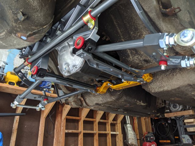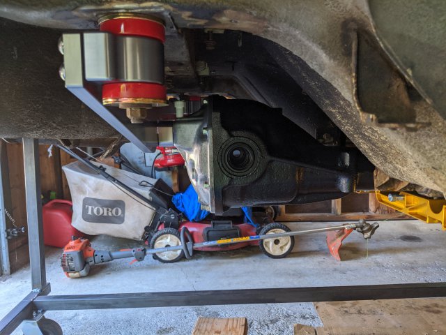 BMW S54 into S30 Chassis - Build Threadcarbuilder723 replied to carbuilder723's topic in Other Engines The shim idea would move the diff backwards, but unfortunately since the power braces attach to the front cross member and the drop mounts, their position is independent of the mustache bar. I also need to check where the axle outputs are positioned with all of this. I don't want to slide the whole thing back and then mess up the half shaft angles.