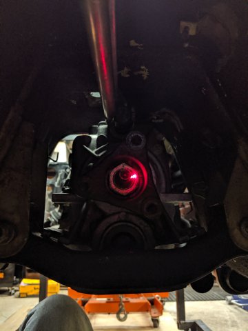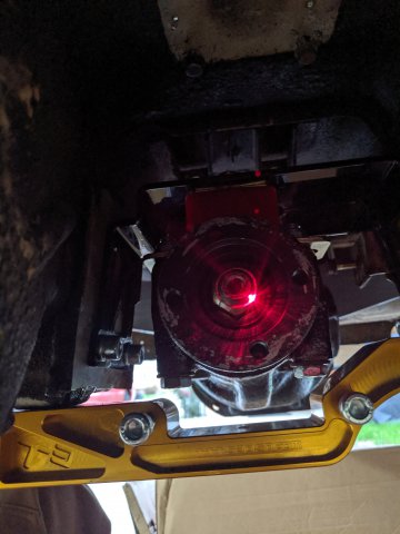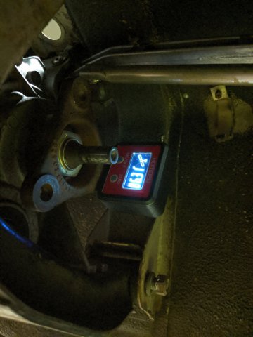 BMW S54 into S30 Chassis - Build Threadcarbuilder723 replied to carbuilder723's topic in Other Engines So tonight I focused on just gathering some information on the relationship b/w the differential and the transmission. I got a 20ga boresight laser and a mag base from amazon and used that to see where each was pointed. The differential was pointed almost exactly where it needs to be, and the transmission was a little off, but it still needs actually mounted, right now it's just sitting on the stock trans cross member. I also probably need to work on something to better hold the laser on the transmission. The current solution of just holding it there isn't very consistent. I also got a digital angle finder and took the angles of each flange. The difference in the angles right now is about 2deg and I'd like to get it closer to 1deg given that I am planning on using a single piece driveshaft with a BMW guibo on one end and a CV joint on the other.