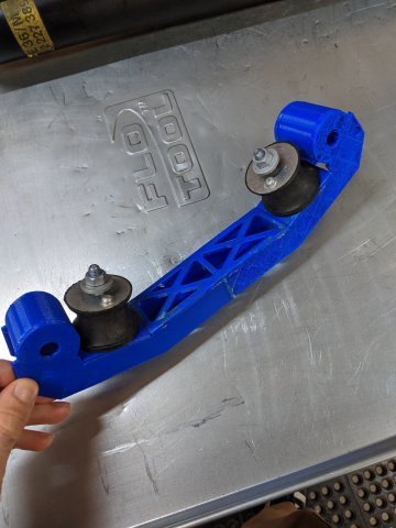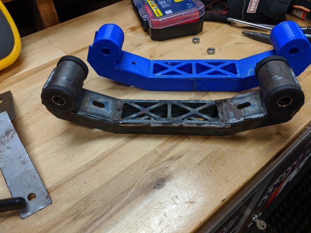 BMW S54 into S30 Chassis - Build Threadcarbuilder723 replied to carbuilder723's topic in Other Engines After a taking a break for a while, I've been working on getting the transmission mount sorted out. I took some measurements, drew up some CAD and fired up the 3D printer. I got it fitted in and it really looks like it's going to work out quite nicely. The laser pointer is near dead on, but I still need to put the angle finder on it one more time to verify that all of the misalignment is < 1deg. The plan is to send out the drawings before the end of the week to be laser cut. Hopefully I can get it welded up by mid next week.