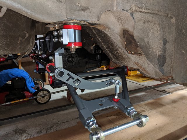 BMW S54 into S30 Chassis - Build Threadcarbuilder723 replied to carbuilder723's topic in Other Engines Here comes an update... I think I figured it out and finally have the whole rear differential where I want it now. So here goes my attempt at an explanation... I had all of the stock parts so I reinstalled all of that and decided to take some measurement of the output shaft locations. The numbers are a bit arbitrary here but are for reference only. I measured a fore/aft location of about 10.25" and an up/down location of about 7.75". Keep those in mind. Then I put all of the new parts back in as you expect and as designed by T3 with the spacer between the mustache bar and the diff. I redid the same measurements and came out with: fore/aft location of about 9.125" and an up/down location of about 7.75". You'll notice that the fore/aft measurements are different by 1.125", where the new parts sat further forward in car than the old parts. Now, that being said, the T3 front differential mount and cross member with the parts in this configuration were very close to lining up although were out by approx 0.25". I could probably have made this work. However my desired set up is to use the 3-1108 GM transmission mount to hang the diff from the Technoversions R/T mount I'm also using, in concert with the the snubber on the bottom. But the issue with this was the the differential was sitting much too far forward to have the R/T mount line up with the forward set of holes on the diff. (no picture of this... sorry) So, I decided to try one more thing... (and maybe you see where I'm going with this...) I removed the spacer b/w the mustache bar and the differential. It is exactly 1.125". I reinstalled everything less spacer and what do you know... the R/T mount and the front set of holes on the differential line up. So I got the 3-1108 poly mount installed and the differential hanging that way. I took the front differential cross member and snugged that up. All is good, except now I'll be using a snubber on the bottom to "sandwich" the nose of the diff. I also redid my measurements one more time in this configuration and the numbers came out much closer to those with the original equipment. so in summary my current set up is: R200 from an '83 280ZX T3 Mustache bar (with 1.125" spacer removed) TechnoVersions R/T mount and 3-1108 GM transmission mount to hang differential - This also put the nose of the differential a bit lower to reduce the pinion angle which I was having issues with before T3 differential front crossmember with snubber (needs cut down to fit properly per normal process) I'll get some more pictures up soon that show the overall setup better, but I am waiting for a new set of T3 power braces to come in. My original issue with those was that they were too long, and T3 is being great and sending me a new set of them to try out. With the differential in its place... Now I can move on the the transmission and figure out where that needs to be in order for the driveline to be angled properly. I got my laser and mag base in today, so that should be happening this week.
