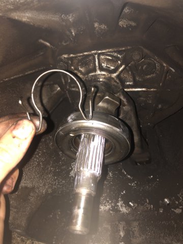 3. I got my new throwout bearing pressed in but for some stupid reason I cannot figure out how to get the throwout bearing spring on? What’s the trick?