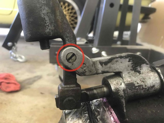 I have a F4W71A transmission from my 71 240Z that is sitting on the floor of my garage while I rebuild the engine. The shifter has that loose "monkey motion" which I'd like to try to tighten up while it's out of the car. I'm thinking that if I can take off the shift lever, I can probably just squeeze it in a vice to take up the play between the prongs. If that doesn't work, I could try heating it and banging it on an anvil. Has anyone out there done this successfully? Removing the C-clip and pin from the bottom of the lever is easy, but how do I get the pin out of the upper pivot (see pic below)? It looks like a flathead screw, but trying to turn it with a screwdriver got me nowhere. Video of loose shifter: