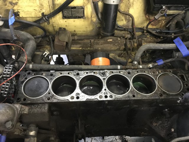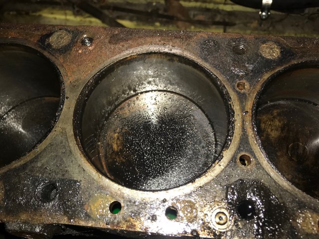 I just pulled the head off of my new (to me) L24 that hasn't run in ~10 years to get it rebuilt and resurfaced yesterday, and my engine looks like it's in worse shape than I was hoping. When I pulled the head off, there was coolant puddled in some of the cylinders. I was hoping to just get the head work done, pop it back on and be able to drive the car around for a few months. After cleaning up the deck surface a little bit, I've found that it's pretty scratched up and has a few nicks and dings around the top of the cylinder. I was planning on pulling the block apart at some point so I can get it hot tanked, but now I'm worried that I need to get the deck resurfaced before I can run the engine. Am I being too conservative here, or do I really need to pull this thing apart and get it re-machined? Coolant in cylinders right after pulling head off: Nicks and scratches on deck near cylinder: More scratches: State of cylinder before minor clean up: