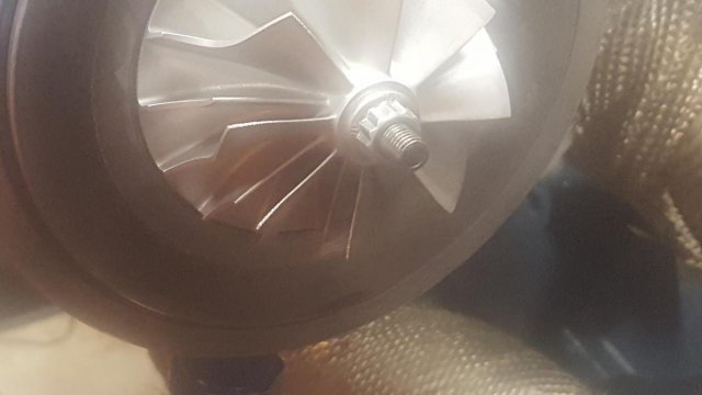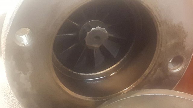 The center section was replaced when it was rebuilt the compressor wheel has ate something in a previous life but was there before the rebuild I asked about replacing the wheel the re builder said it was fine
