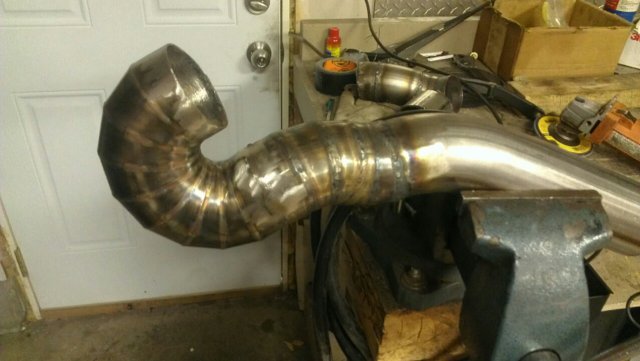 I have started on my down pipe for my turbo tom set up with a borrowed tig welder and a harbor freight chop saw