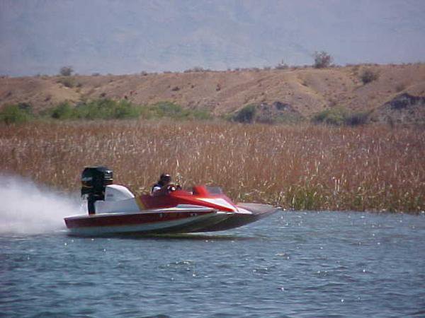 are you refering to my old boat-the motor was a mercury 260 hp outboard.rev limit 8000 rpm.hull weighed 700lbs.top speed 110 mph.i sold that but i am saving up for another boat of the same type.it was expensive to run but i got addicted to the speed.