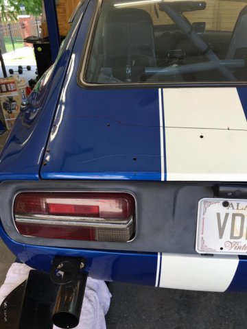 LS/T56/240z Project Mentor WantedRebekahsZ replied to RebekahsZ's topic in S30 Series - 240z, 260z, 280z Working on high speed stability as I prepare for the Ohio Mile. Drilled the rear hatch to be able to make a pass with no rear spoiler, then to quickly mount a small BRE-style spoiler for a pass, then to go on up to a larger rear spoiler. The BRE spoiler has 6 studs already bonded into it. The Larger spoiler came with 2 rivet nuts in it from the supplier. I drilled it and epoxied (10) 1/4" aluminum rivet nuts into it. This is the first mod I've made to try to get the car to go straight better. Next is to drop the fuel tank and to get it to my chassis guy to have the chute mount built. Pics to follow.