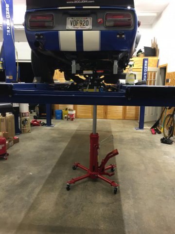 LS/T56/240z Project Mentor WantedRebekahsZ replied to RebekahsZ's topic in S30 Series - 240z, 260z, 280z Tank is out. Using the lift and a fuel tank adapter on a transmission Jack, it was the easiest time I've ever removed the tank. Only spilled about a cup of gas in my eye. Which is better than usual. Missed my new shoes. One step closer to getting the chute installed.