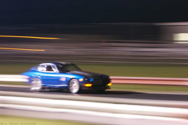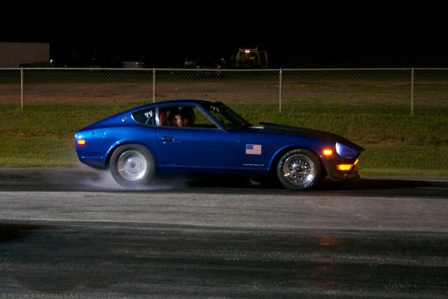 I'm keeping a log on the Motorsport forum of how the racing is going called: "Learning to Drag Race a Z-car" if you want to subscribe to that. I am VERY inconsistent night to night. My best run has been 7.29 at 96mph (1/8 mile). Best 60' was 1.7, but it was not on my fastest run overall. I'm kind of all over the place in terms of how I'm staging the car-need a lot more experience. I have learned that the advice of running bias ply fronts with bias ply slicks is gospel truth (the tail of the car wagged really bad when I had radials in front with the bias ply slicks). However, with bias ply tires, the car does wander a lot on the fast end of the track making it more like parking a boat than an exact placement of the car like one would do in autocross. Wandering is distictly different than "wagging." A car approaching 100mph with the tail wagging back and forth is flat scary-like a trailer trying to jack-knife. Wandering is more entertaining than frightening, the car drives like it is buzzed from a couple of beers, just kind of sluggish. Racing a slow car can make one cocky, thinking that he is a good driver, only limited by the car, whereas, trying to be consistent with a fast car is very humbling. Had I been bracket racing on my last outing, I would have dialed in 7.50; I had two "shot groups" of runs: one in the 7.50s and the other in the 7.60s. I probably won't get back to the track until September. Got a daughter starting college, and I want to make a couple of big changes to the car's pedal setup and rear suspension. -