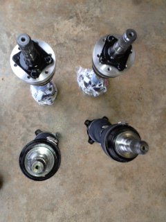 Got diff R200 in with CV axles, and shortened adjustable rear LCAs. Ops normal, I did everything wrong and had to do almost every step twice. I am now an expert with the spindle pin puller, having learned the wrong way to use it first and getting it stuck on the spindle pin. (That tool is an ablsolute miracle - everyone should order one right now). I am an expert on putting a spindle pin in backwards (why didn't Datsun, put the flat spot exactly in the middle so it could go in either way??). I am proficient at cross threading a locking nut onto a stub axle, but luckily, I'm pretty good at cleaning up goofed threads. I'm good at re-routing brake lines that rub on the companion flanges. All that considered, it went pretty well. The RT mount is so much easier to install than the stock mount; it also allows you to torque the driveshaft bolts with the crowded front-rear suspension crossmember off, although there still isn't enough room to use an actual torque wrench to tighten them. The 280z mustache bar goes in pretty easy if you take the rear-rear suspension cross member out first since it goes BEHIND the uprights instead of in front of the uprights for the 240z mustache bar. My buddy's high torque long-ass torque wrench is awesome. The CV axle bolts have room to use a crows foot and torque wrench to torque them rather than using german torque as required with stock companion flanges. The Z31 CLSD R200 input flange was exactly the same as my old 240z R180 input flange, so the JCI driveshaft bolted right up without modification - I just dropped the driveshaft and let it hang, so I didn't have to drain the tranny. The adjustable LCAs allowed me to reduce the negative camber induced by lowering and upper camber plates, as required to get my wheels and tires inside the wheelwells. I kicked the top of the tire in just enough for the tires to clear the fenders. Well, I used the LCAs to pull the bottom of the tire in. Stock LCAs are about 14.5" center to center. I adjusted my new ones an inch shorter at 13.5". That actually gave me some obvious positive camber! Imagine - a lowered Z with positive camber! Once the suspension settles with a test drive, it may not actually be positive. When I get it to the alignment shop, I'm going to arrange for 2 settings: drag with zero camber and autox with whatever johnc's specs are. I dropped my coilovers way down and jacked the LCAs way up with the CV axles loosened up to check for axle bind (the shafts are shortened by JMortensen). Full travel up and down, and I always had a little slack in the axles (not much). Glad I flipped the cages while I had them apart. It was a busy weekend. I'll try to add some pictures tomorrow. -