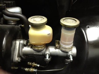 Thanks so much, guys. Anybody who has had a stuck caliper, please describe your symptoms so I can think about that some? While the temp of both rear rotors was twice the temp of the front, the left rear has consistently been the hotest. I will check for a residual valve-it would be so sweet if it was that simple. I love this forum!!! My master is a 15/16", so I assumed it was from a disc equipped car. The only way to know is to tear it down and check. Will probably be Wednesday before I can do it an get feedback posted. I have the stock 240z pushrod installed on my 15/16 master cyl. I have not yet adjusted the little rod that connects the booster to the master cylinder. If I remember correctly, it is adjusted to the short side, not the long side: could that be a problem? There is a lot of travel before the pedal firms up; I assumed that was due to needing to lengthen that little pushrod that connects the booster to the MC. I was saving that until I don't have dragging brakes. Thanks guys, I really appreciate it. -