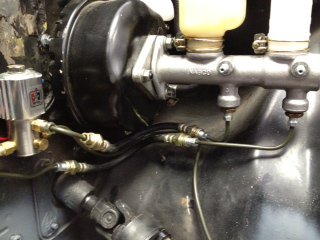 Flex lines to master cylinder done. Used front 240z stock flex lines. See before shots two posts back and after shots here. Hoping this mod will make adjusting the push rod between the vacuum booster and master cylinder easier. Also should make any vacuum booster maintenance easier. -