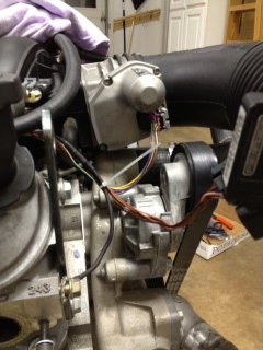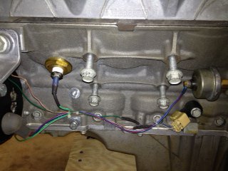 Wiring. The first pic shows the engine harness with all the split casings removed and organized with zip ties. Next is the passenger side of engine: since I moved the cold air intake to the passenger side, the MAF wiring needed to be moved from the driver side to the passenger side-perfect length, no cutting. Found out that my engine supplier gave me an LS1 MAF instead of an LS2 MAF because the plug doesn't fit; LS2 MAF ordered (whats ANOTHER $100?). On the left side of the engine I made a little harness that re-routes the knock sensor wiring via the front of the engine to avoid the direct heat of the exhaust. The water temp wire was added as was the oil pressure. That is routed along the alternator wire from the drive side to the passenger side of engine to mate with the 240z engine bay wiring. I re-routed the alternator and LS2 water temp sensor to be more neat as well. Finally, all the wires that will enter the cockpit were relocated to the drive side in order to pass them into the cockpit via the existing choke cable hole in the firewall. Not depicted is a jumper wire off of the transmission VSS high speed wire (blue and white) to send a signal to the Cable-X. I plan another test install of engine into car (I'm getting pretty good at it) before putting split casing back on the harness and adding weatherpack connectors. -