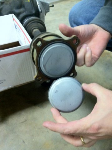 The axles I got had one end cap removed, but at least it was present. However, it is not flat like the other one. It looks sprung, kind of like a sock turned inside out? I tried to get another one from sources on the forum, but the only one I found is for some other axle. I am about to take a rubber mallet to this end cap to see if it can be straightened out. Any suggestions? Pictures show both installed cap and the one that was removed. The next two pics show how it is turned "inside-out." The final pic shows a normal cap.
