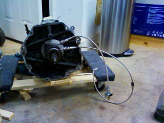 Kitchen is pretty well finished. Got some time in garage and did some transmission work. Installed 18" remote bleeder hose for throw out bearing and a 36" AN3 hose with a 90 degree bend to the clutch master cylinder. Disconnected trans from bell housing. Very easy job. Would prefer a 30" AN3 hose, but couldn't locate one wit 90 degree bend. Both lines were purchased from Speedway Motors. I hope I torqued the bleeder fitting tight enough-don't want to break it, but I don't want it to leak either. Shorter (12") remote bleeder line would have been adequate, but I couldn't figure out how to restrain the shorter line when I'm not using it. Changed T56-GTO offset lever for a T56-Camaro offset lever in the shifter mechanism: this allows me to junk the complicated GTO shifter mechanism for any F-body short shifter. Very easy job. I bought a Hurst shifter and wasn't impressed. Searched LS1tech forum and bought short shifter from MGW-love it. Topped it with a button shifter handle for use with linelock. Removed boss on driver-side of engine block that conflicts with JTR headers-didn't see any description of this in anyone else's build write-up. No pics yet, but I removed the front LCAs and TC rods; air chiseled off the TC rod bushing cups and painted all the above - to allow install of adjustable LCAs and TC rods. Mocked up rear disc brake conversion. Received engine harness back from waitformeperformance.com: was hoping for just a few wires to have to hook up. Holy crap! There are a ton of wires to wire up. Each wire is marked, but I'm gonna need a lot of help there. Got F-body alternator back from rebuilder. All for now-I'm pooped! -