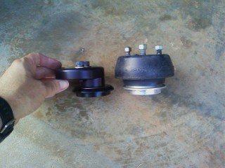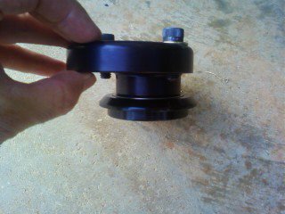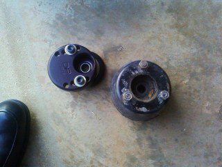 Here's the rest of my pics. Shown are the DP camber plates and also an upper 2.5" spring seat that I had machined that allowed use of the stock upper insulator and steering bearing. That spring seat worked great with my coilovers, but I ultimately had to have increased camber to stop front end from pushing. The silver color of my custom spring seat makes it look larger than the DP spring seat, but it is just an optical illusion-both seats are the same size for 2.5" springs. -