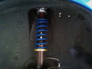 Here are photos of my EMIs installed; you can see how the stut rod is moved inward. I've tried to take pics of my coilovers looking up into the fender, but the lighting in my garage is no good for a decent photo. I'll go shoot pics of my DPs (putting them in the rear) so you can see how spring seat looks then I'll edit the post to add them. I think about $300 for a pair, but email John at BetaMotorsports.com to order; if you have to get new strut inserts the project can get pricy. If you decide to get new stut inserts, consider Konis just to have the best and be done with it. I've had quick and slow deliveries from John, so you might want to get them ordered pronto if you decide to go this way-he doesn't keep much in stock and sometimes you may have a production delay while he gets a manufacturer tooled up. -