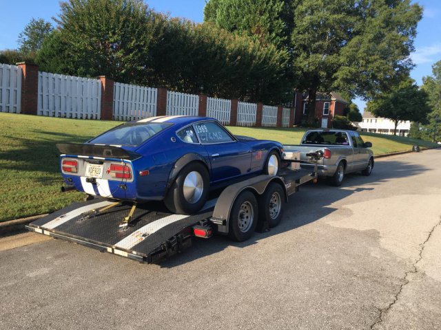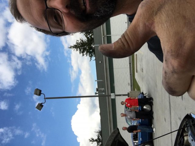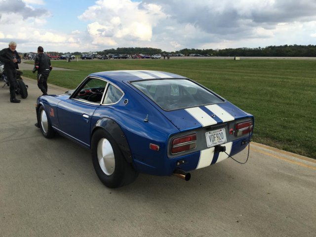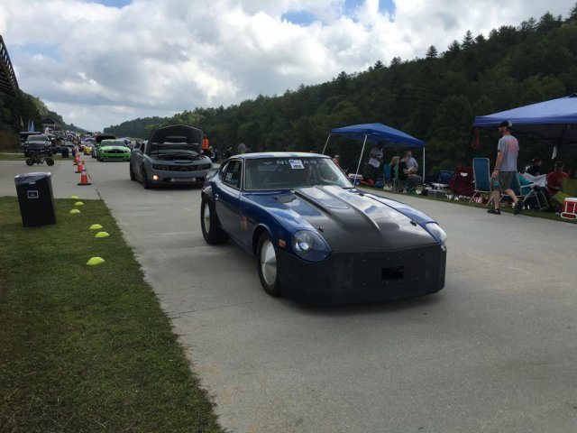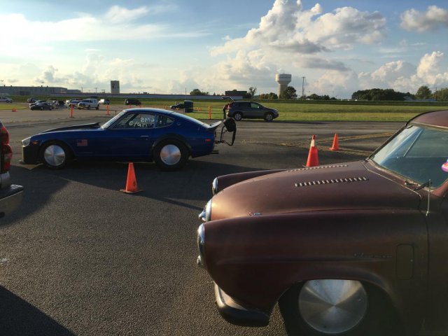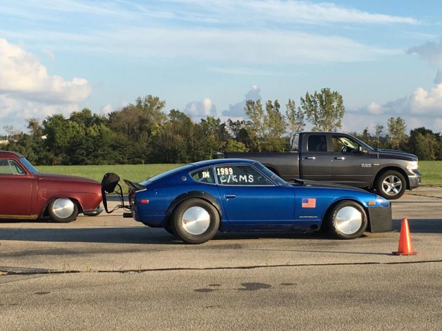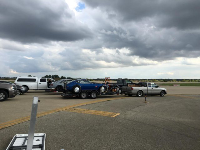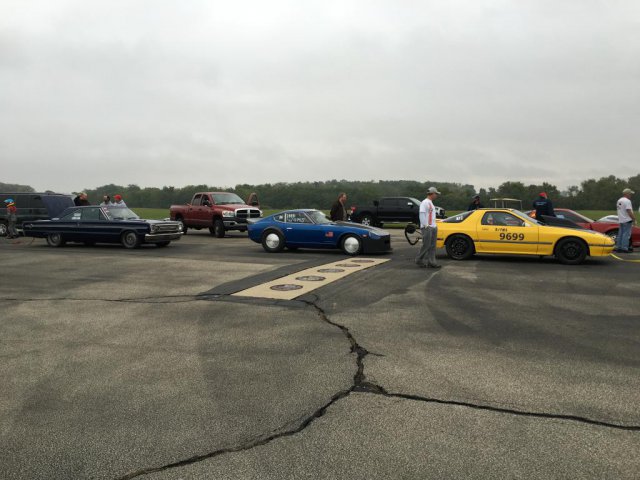 13. Ohio Mile. Ran (5) 170mph runs, a 171mph run, and a 173mph run. Rained entire first day. Got 3 runs on a crowded second day, then 3 runs on 3rd day with a thinning pack and motorcycles being held due to crosswinds. Then rain shut down day 3 early. Don't freak about the proofs-I have purchased these photos, but they are on my laptop. Truck had an idler pulley start squealing on the way home, so we had to do some repairs-seems to be a pattern with me. Had to use the Z to chase parts. The sign in the parking lot says "No car work allowed in parking lot!"-lol.