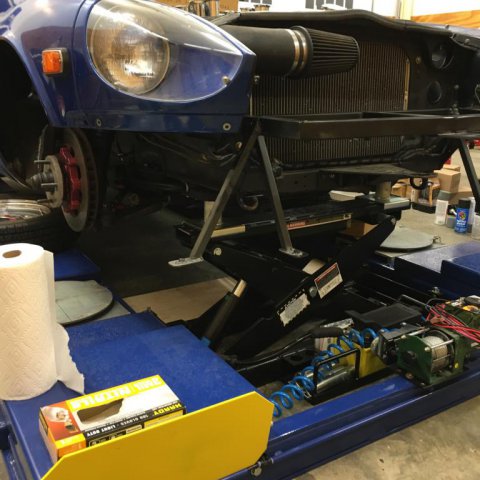 LS/T56/240z Project Mentor WantedRebekahsZ replied to RebekahsZ's topic in S30 Series - 240z, 260z, 280z Chute mount painted. Chute release mechanism (parking brake handle) painted and reinstalled. Passenger seat reinstalled. Fuel tank reinstalled, filled with 93 octane. License plate and tail light surround modified for chute and reinstalled. Went to local cruise-in last night and tried the line-lock out when leaving. Don't know if the street rodders liked all that rubber smoke or not. I did it just up wind of where all the old-timers and their wives were sitting in lawn chairs, but away from any cars with shiny paint jobs. Got lots more attention than ever before (it helps to show up without a hood). Burned rust off the rotors that had built up since April autocross (last time car was driven). car fired right up as soon as fuel pressure gauge hit 50 psi (I love EFI!). Car is back on lift to replace a front brake line that got crushed at ZCON 2015 in an off-track excision. It still flows but probably won't pass ECTA tech if spotted. Got the framework for the LSR airdam installed too. Was assisted all day and 'til 11pm by Thomas a new member of hybridZ who lives 2 hours away. His '71 Z came from Austin, TX and is incredible as a stocker-81,000 original miles. I encouraged him retain the A/C and to keep it stock. We got it on the lift and found 4 leaking struts and 2 bad inner tie rods. A test drive only revealed the need to perfect the clutch pedal adjustment and the need for inner tie rods and to have the rotors turned or replaced. otherwise car drove great. Was leaking oil from cam cover and oil pan. We found all the bolts finger tight and torqued them all evenly to 84 inch-lbs / 7 ft-lbs. His car drove like a dream-even had original exhaust pipe, was very torque-y and quiet. He has tuned it well. We hope to replace those few wear items before spring when Z Atrack will hopefully be held again (it has been 3 years) at Nissan HQ in Franklin, TN in April. I hope Thomas will enter as a stock (repainted) car and will likely place in top 3, and I will enter in some crazy ultra modified class and will likely win the T-shirt I bought at registration, if past history proves itself. Maybe we will get an Ansa style muffler for Thomas after that just to sexy up the car. But I bet a muffler alone would put him in Modified class, and his car deserves a trophy as it sits. So hopefully he will leave it alone for a bit and not catch my disease. It was great having a buddy over to the shop, and he was a good co-worker. Brought great home-made chocolate chip cookies as a peace offering and I ate nearly the whole bag! Well done, Thomas! Kudos to Charith in LA/SD for helping Thomas find such a great car.