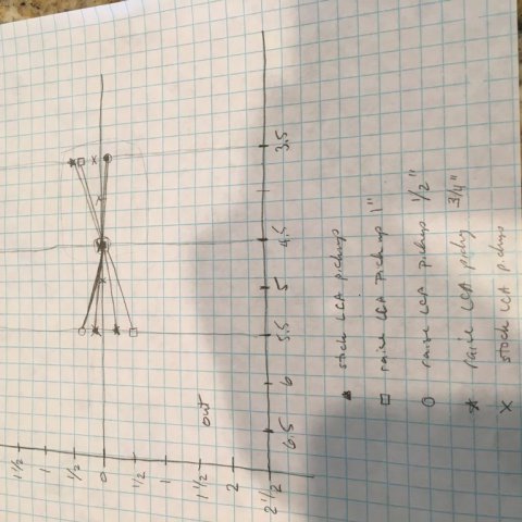 New project-reducing bumpsteerRebekahsZ replied to RebekahsZ's topic in Brakes, Wheels, Suspension and Chassis I think it's gonna be bumpsteer spacers that it takes to totally flatten that curve on the chart with x's. That's the final setting I'm gonna run. I will have a report in a month.
