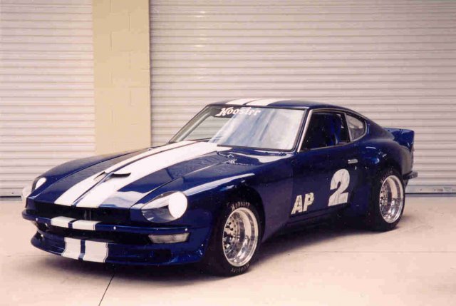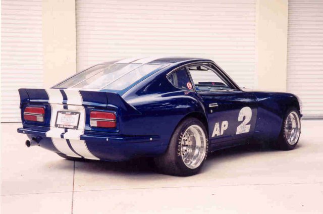 Here is a pretty sweet treatment for the rear quarter panel... And I've always liked this kind of blue paint scheme with the white stripes. I wish the front quarter photo showed better detail. The shadows are a little too dark to see what the rear quarter really looks like from that angle. That said, I like Sung Kang's FuGu Z better. It is more respectful of the original design. When aftermarket body panels are seamlessly attached to the S30, I think it rarely turns out well. Quite often it looks like an attempt by unqualified persons to improve on an original design which is already nearly perfect. I think pocket flares are better because there is no doubt that they are not part of the original design, which protects the integrity of that design while still allowing for functional improvements. It even allows others to try to enhance the design without confusion as to what is being done. I think the designers at Pandem have successfully walked that fine line. -